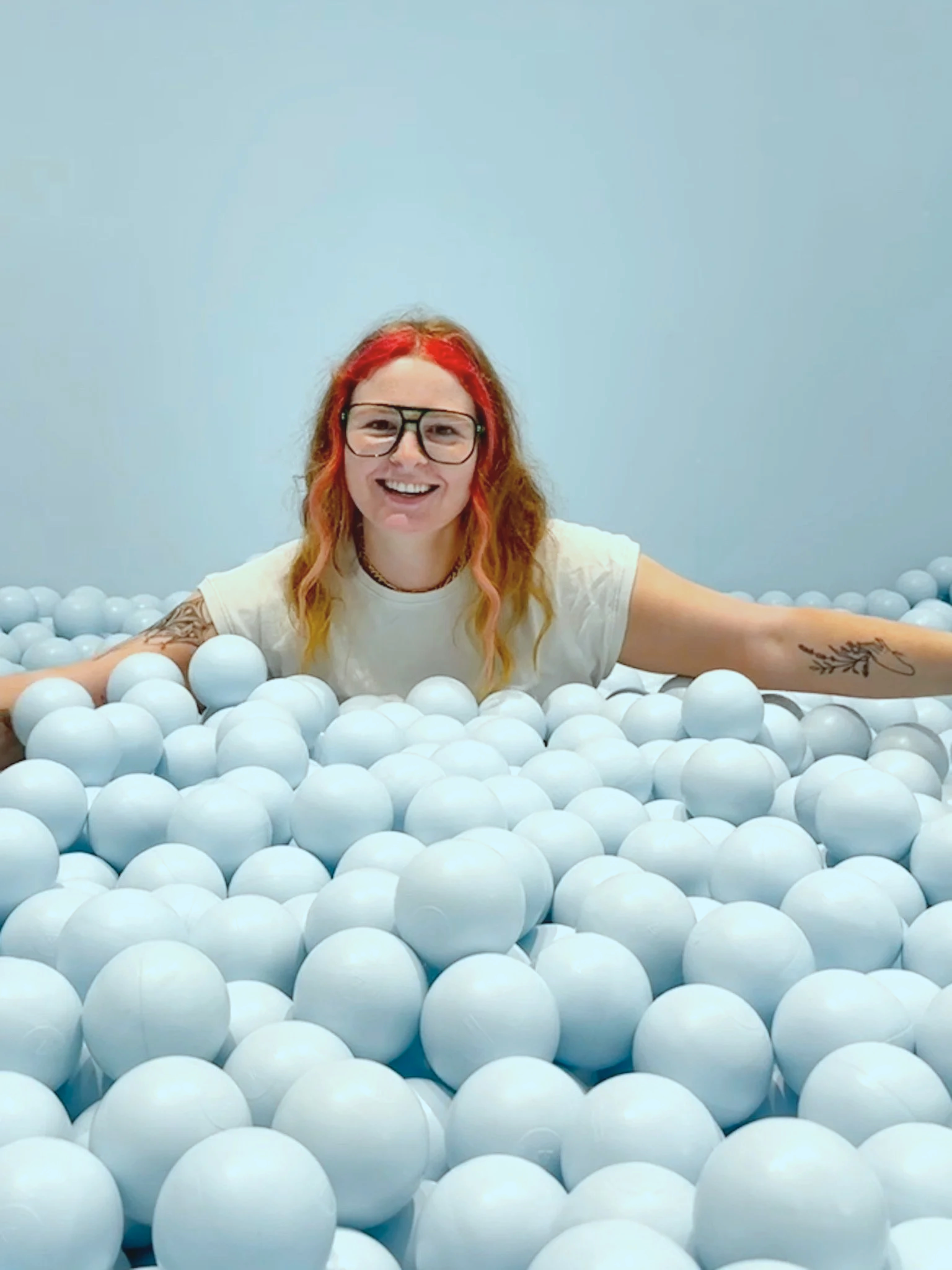 I grew up in New York City and moved to Los Angeles in 2021. I love iced lattes year round (or matcha’s), roadtripping, IKEA meatballs, building furniture, doing DIY’s, spending time with my family, and of course my two daughters; Koda and Basil…yes they are dogs. I graduated from the School of the Art Institute of Chicago in 2023, spending most of my time there as an online student. If I am not making art, I am usually watching a women’s soccer game, playing with my dogs, at a museum, or rearranging furniture! If you couldn’t tell, I also kind of love interior design ;)